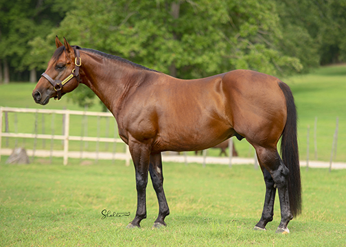 | Conformation | Impressive individual who screams quality. Medium barrel, excellent balance throughout, correct, terrific bone and well muscled. Full mane and tail, only white is right hind above hoof line. Striking bay. Stands 14.3 hands. |